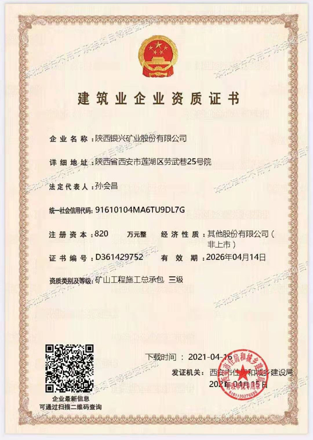 建筑业企业资质证书