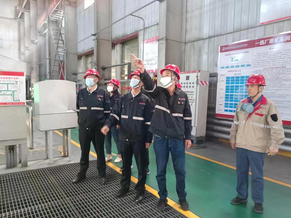 张文全一行深入选矿车间、总控室、尾矿库等地对生产情况进行实地查看,详细了解现场生产、设备运转、安全管理等情况,与现场干部职工进行交流。