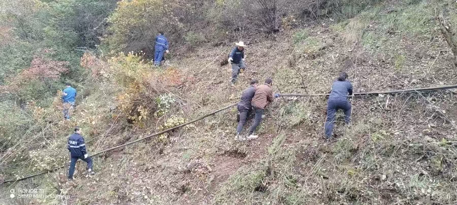 历经四个多小时的连续奋战,全体人员汗透衣衫,清除了近800m²的树木荆棘,将完全被遮蔽的缆线通道彻底打通,并把光缆提升至安全高度,成功清除了这只“施工拦路虎”。
