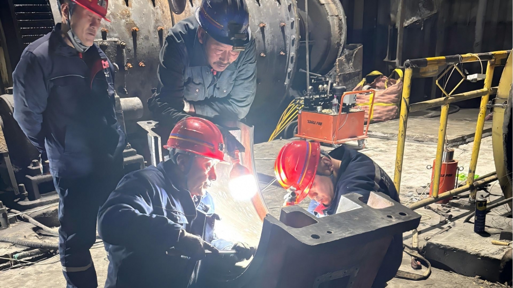 故障发生后,白玉银兴公司经理田东清迅速抵达现场,根据设备故障状况进行现场研判并采取果断措施进行停机抢修。在抢修现场,党员干部主动亮身份、扛重担,充分发挥先锋模范作用,成为抢修队伍中的“主心骨”。田东清带领维修团队趴在设备旁仔细排查故障点,在刮瓦环节精细操刀,凭借多年丰富经验和专业技术储备,勾画出完美的弧线。为了加快抢修进度,抢修人员放弃休息时间,轮班作战、每天连续工作16小时,累了就趴在桌上短暂小憩,始终坚守在抢修一线。食堂将饭菜、饮用水送到现场,确保抢修人员有充沛的体力。